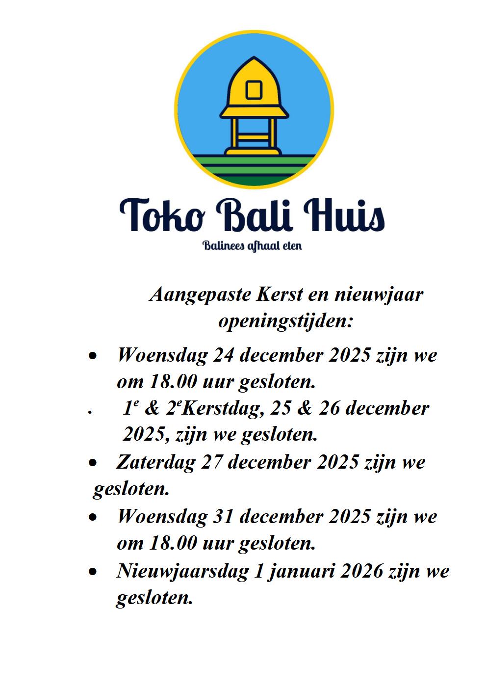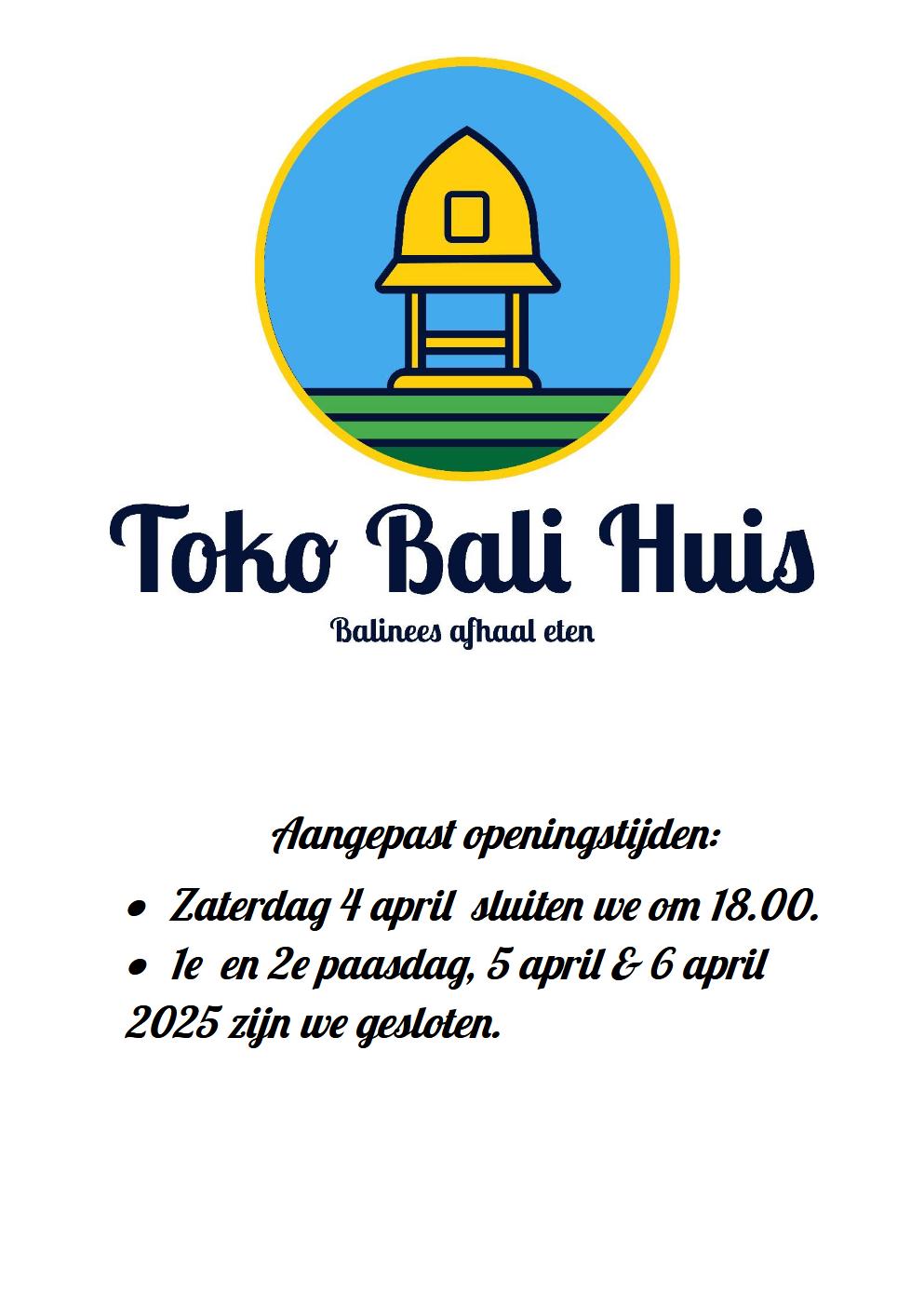 We zijn van Toko Bali Huis, een afhaal maaltijd winkel gevestigd aan de Steenstraat 76 te Arnhem. Wij willen graag een stukje smaak van Bali (Indonesië) naar Arnhem brengen en wij gaan jullie verrassen met authentieke “Balinese Flavours”. Al onze gerechten zijn bereid met verse ingrediënten, “home made” en gebaseerd op traditionele Balinese familie recepten. Hierbij nodigen we jullie van harte uit om een bezoek te brengen aan onze winkel en jullie laten verrassen met onze Balinese keuken.
